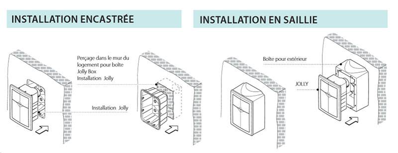 Le système d’aspirateur central Jolly est particulièrement adapté dans les logements où le réseau d’aspiration centralisée n’est pas installé. Chaque centrale Jolly permet de nettoyer jusqu’à 60 m2. L’unité aspirante est très facile à installer et peut être montée en saille ou encastrée. Le refoulement de l’air filtré peut se faire à l’extérieur du logement en saillie ou encastré grâce au kit de refoulement. Lorsque le Jolly est installé avec le boitier saillie, il est possible de refouler l’air filtré par les ouïes qui se situent sous le boîtier.