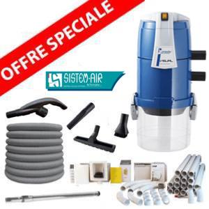 Pack Aspirateur centrale VISUAL 250 + 16m de tuyau spécial aspiration centralisée + kit 1 prise et 1 flexible rétractable retraflex de 12m